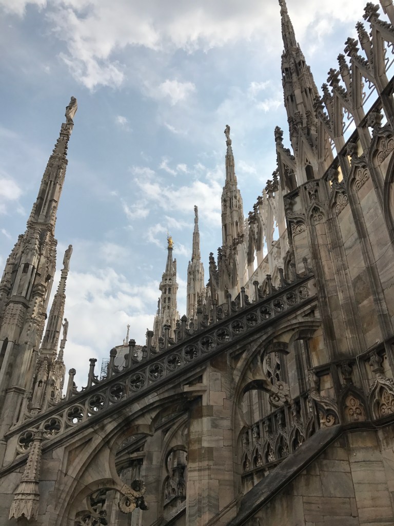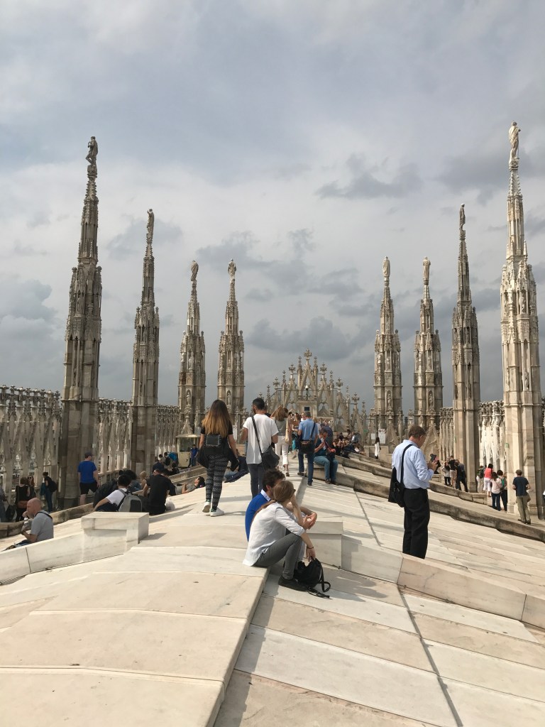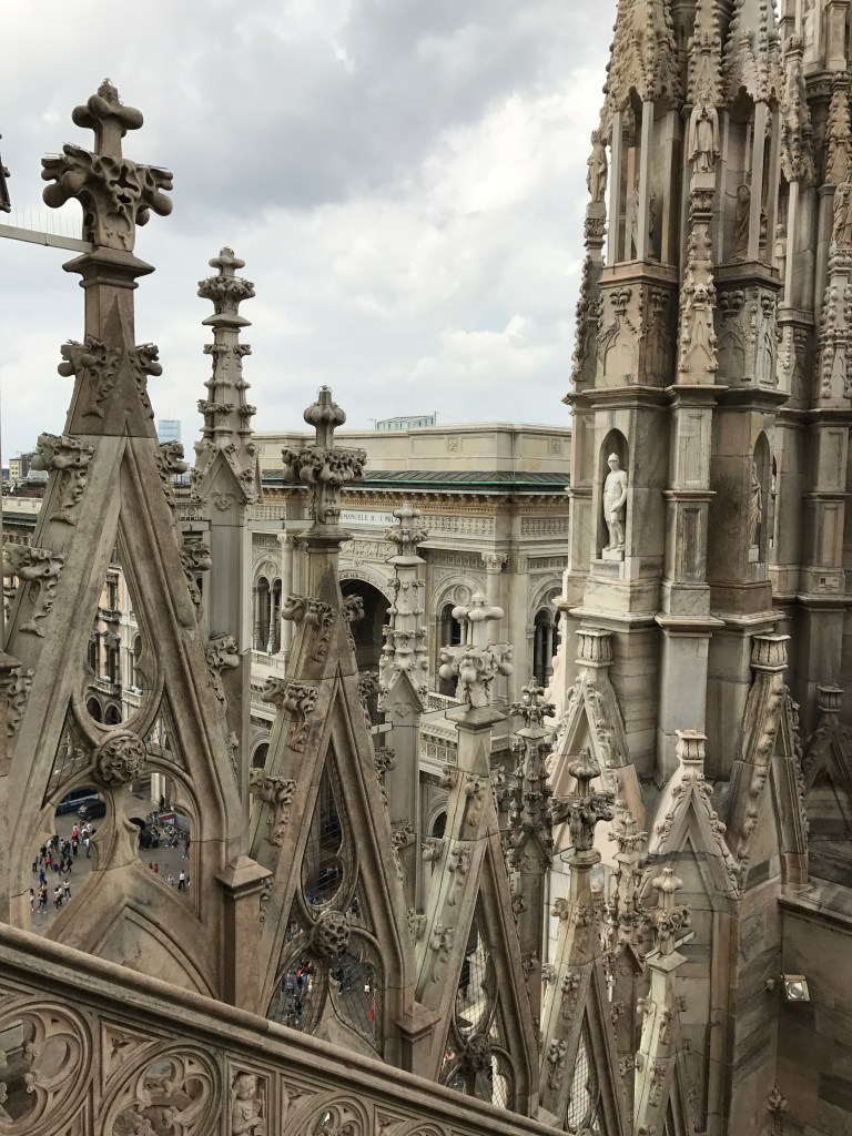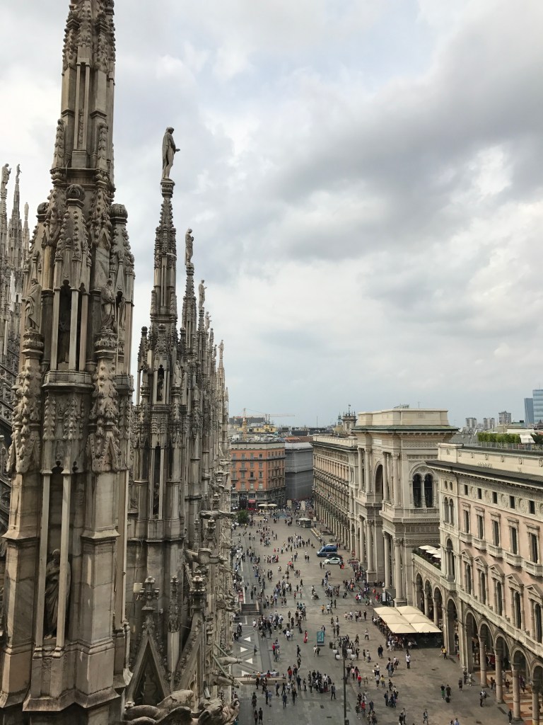 La perfezione delle sue guglie, la vista della Madonnina da vicino, poter toccare con mano un’opera d’arte dal valore inestimabile, camminare sui tetti di uno dei monumenti storici più meravigliosi della terra, il panorama mozzafiato sulla città e pensare a quanto, a volte, l’opera dell’uomo possa essere così sublime e incredibile sono tutti elementi che vi impediranno di dire “adesso è ora di scendere”. Non preoccupatevi perché una volta scesi dalle terrazze del Duomo non avrete che l’imbarazzo della scelta: una visita alla rinascimentale Galleria Vittorio Emanuele II che collega il Duomo alla Scala di Milano con la sua cupola “l’ottagono”, i suoi pavimenti a mosaico in cui sono rappresentati gli stemmi di alcune delle principali città d’Italia tra cui spicca per notorietà lo stemma della città di Torino e il suo toro (per garantirvi un po’ di fortuna dovrete girare su voi stessi a occhi chiusi facendo una rotazione completa puntando il tacco proprio sugli attributi dell’animale) e i suoi lussuosi negozi; una passeggiata in Corso Vittorio Emanuele II dove vi sarà impossibile non buttarvi nello shopping più sfrenato; un visita ad une delle mostre del Museo del Novecento esposizione permanente di opere d’arte del XX secolo ospitata all’interno del Palazzo Reale e del Palazzo dell’Arengario. Si è fatta l’ora di uno spuntino? Andate ad assaggiare l’unico e inimitabile panzerotto di Luini in Via Santa Radegonda: attenzione perché uno tira l’altro. Anche se a volte le code sono interminabili, soprattutto nel fine settimana, vi assicuro che ne vale la pena.