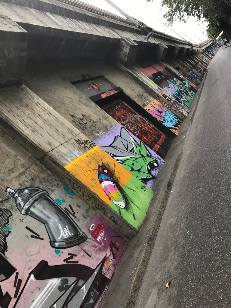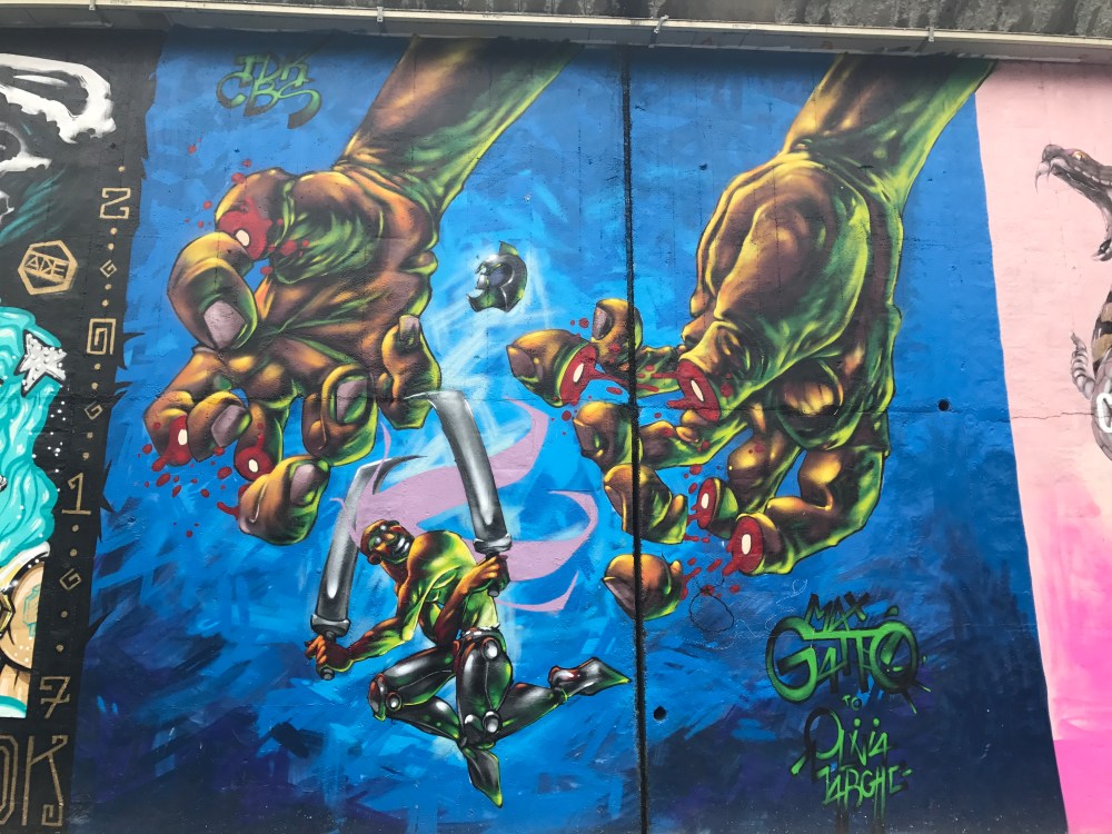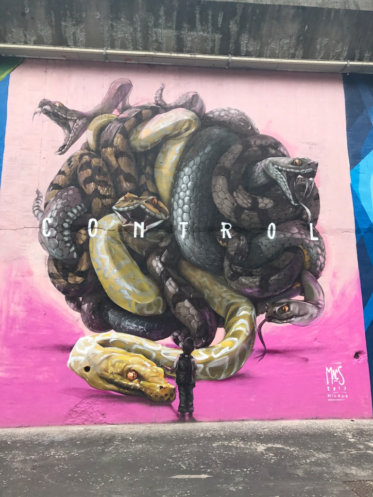 Come vi ho anticipato la mia giornata si è svolta tra il sacro (il Duomo) ed il profano (le strade di periferia di Milano). Una delle cose che amo fare durante i mie viaggi è partecipare ai vari graffiti tours organizzati nelle città e perdermi tra le opere degli artisti di strada che trovo una delle espressioni artistiche più d’impatto e che meglio rappresentano la nostra società. Così mi son chiesta se esistesse un tour del genere anche a Milano e purtroppo mi sono resa conto che sono veramente pochissimi e molto costosi. Così, facendo una piccola ricerca, mi sono costruita un mio piccolo itinerario tra i muri di Milano. Spiccano su tutti i muri di Via Pontano dove i primi a colorare il muro della ferrovia sono stati nomi del calibro di Stan, Mac, Rendo, JD, e del celebre Raptuz, un vero e proprio museo a cielo aperto (scendete alla stazione Turro della linea rossa della metropolitana). Altrettanto unici i muri di Via Padova, i muri intorno allo Spazio Artkademi in Via Dionigi Bussola, Via Gola e i ponti sul Naviglio, Piazza Cradinal Ferrari con i grandi muri di Ivan, Orticanoodles e Pao, la meravigliosa casa sulla Darsena con lavori di Gattonero, Tilf e The Blackwan, il muro di fianco alla Basilica di San Lorenzo, Via Ortica e via Cima e i chilometrici muri al di fuori della stazione della metropolitana di Lambrate.